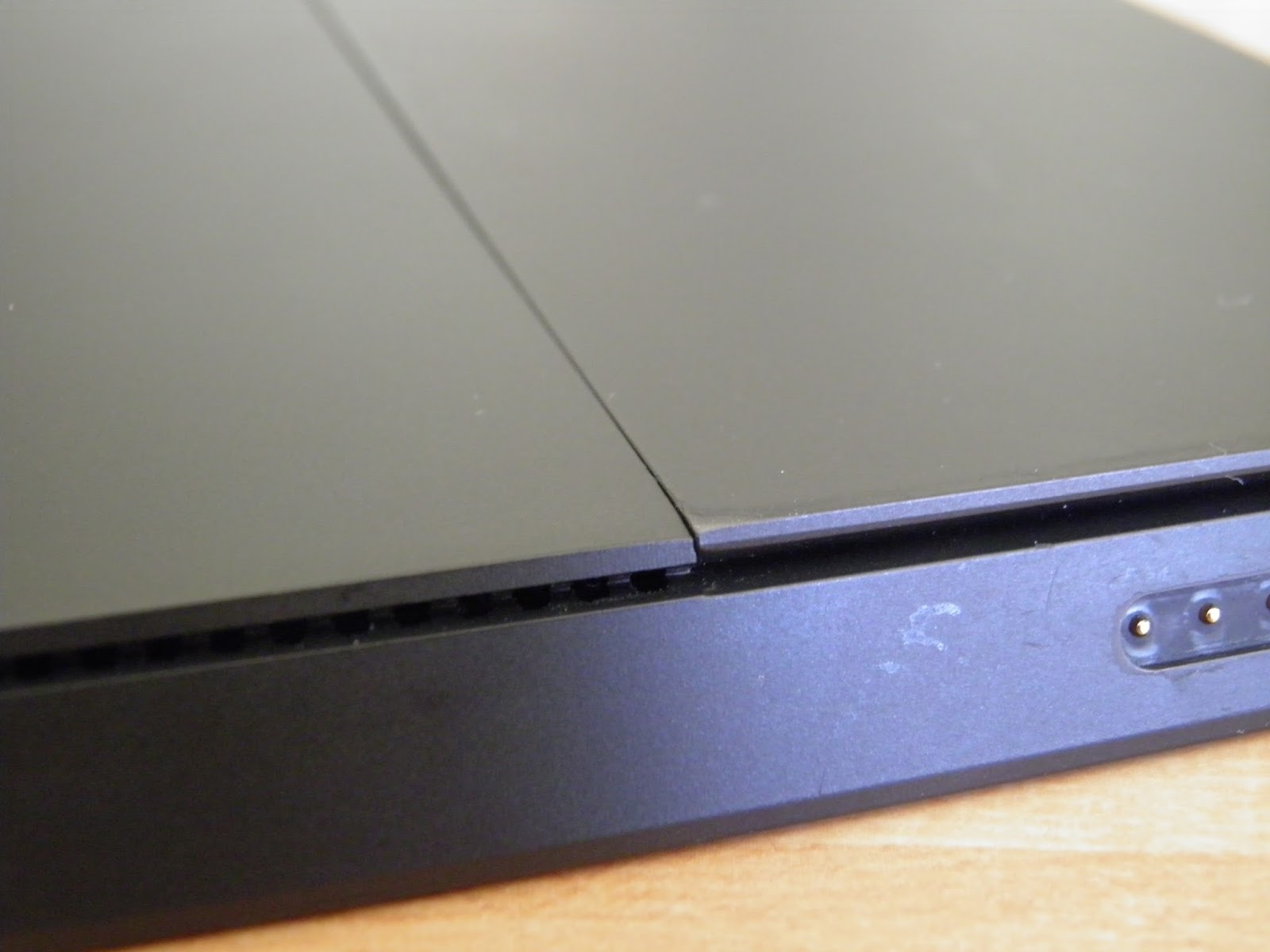 Quella che è una delle caratteristiche più interessanti del Surface Pro sembra infatti che sia stata presa da un altro dispositivo: il bordo del sostegno non riprende la forma del dispositivo sottostante e i suoi angoli spuntano leggermente dalla struttura – frammenti di millimetro, ma comunque qualcosa che si sente sotto le dita e che si vede molto chiaramente. Problemi di assemblaggio sono presenti anche nella parte superiore, dove i alcuni componenti in VaporMg non risultano essere perfettamente a filo.