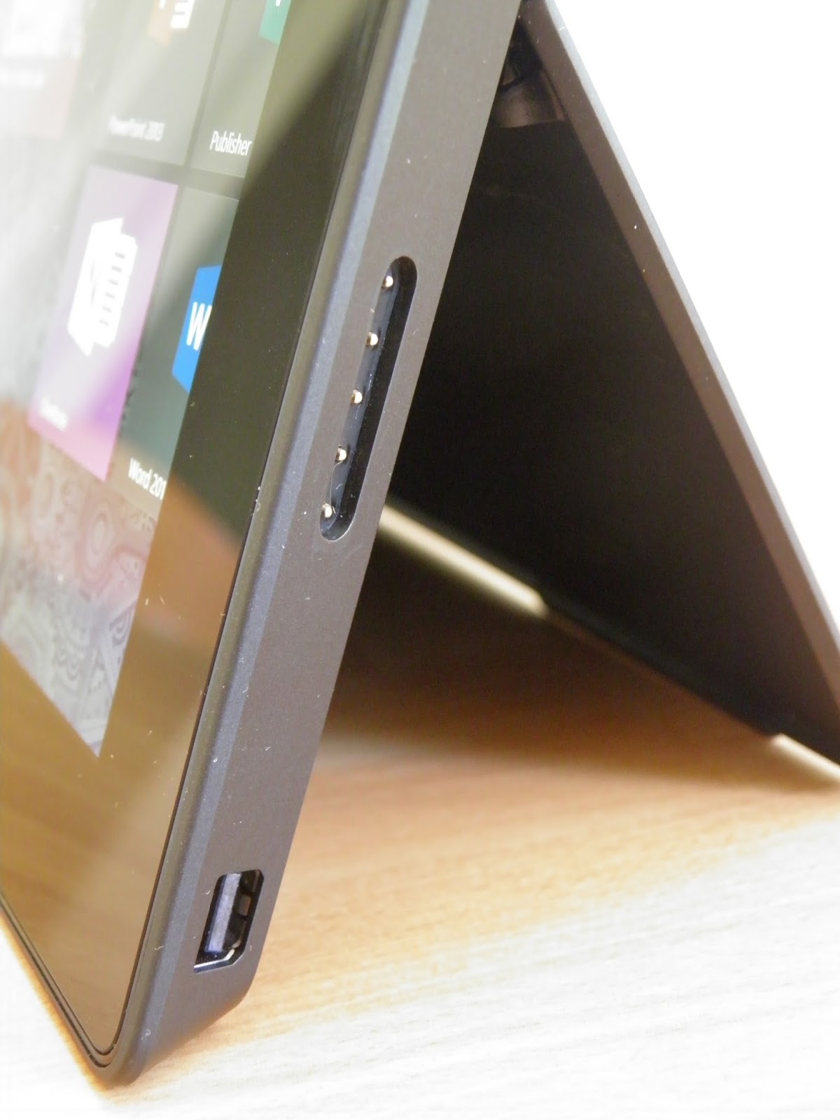 Alla porta USB 3.0 è affiancata una porta mini DisplayPort – una scelta non particolarmente felice in quanto l’utilizzo di questa porta significa che per collegare il Surface Pro alla maggior parte degli schermi esterni e proiettori è necessario un adattatore HDMI.