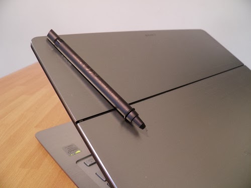 Che sia aperto o chiuso, lo schermo si fissa in posizione mediante dei magneti affogati nella scocca – magneti che in qualche modo possono essere usati per “agganciare” (in modo instabile) la penna alla scocca esterna dato che non è presente un alloggiamento dedicato allo stilo N-Trig.