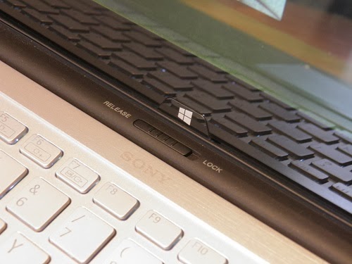 Oltre ai magneti è però presente anche un blocco meccanico, che si mette in mostra grazie ad un pulsante a scorrimento posto sopra la tastiera, in posizione centrale. Il blocco permette all’utente di usare il Tablet PC non convertito con le dita sullo schermo senza rischiare che questo si capovolga involontariamente.
