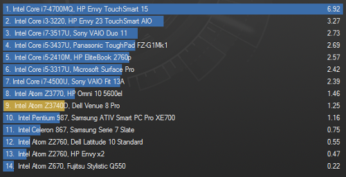 Dal punto di vista prestazionale il processore Intel Atom Z3740D presente sul Dell Venue 8 Pro stupisce, dimostrandosi ben più prestante dei processori Intel Celeron e Intel Pentium basati su architettura Intel Ivy Bridge (Core di terza generzione) – ma ovviamente ancora lontano di processori Core i3.