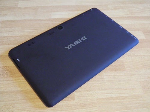 Al centro della scocca posteriore è presente il logo Yashi, incollato con effetto metallico lucido e abbastanza bello esteticamente; meno piacevoli alla vista sono i numerosi simboli che identificano ogni singola porta presente sul Tablet PC: trattandosi di un dispositivo compatto ma ricco di connettività, il risultato sono un numero impressionante di indicazioni e il risultato finale fa storcere un po’ il naso.