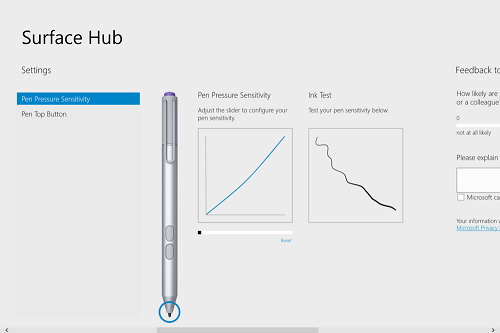 Nel dettaglio la nuova Surface Hub permette di gestire la sensibilità della punta, facendo scegliere all’utente la quantità di pressione necessaria: regolando la curva di sensibilità è quindi possibile impostare una maggiore o minore risposta, in base alle singole preferenze.