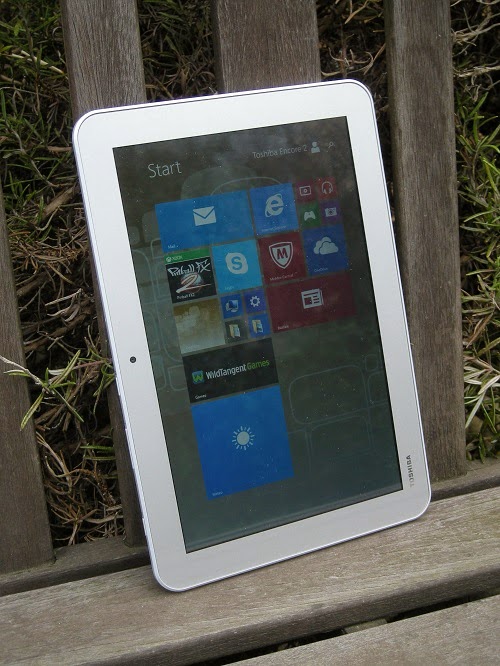 VOTO PARZIALE: 8/10. Dotato di formato 16:10, lo schermo da 10,1 pollici del Toshiba Encore 2 WT10 si usa in modo piacevole ed è superiore a molti pannelli presenti su altri Tablet PC economici non professionali, ma la finitura lucida impedisce un uso in esterni.